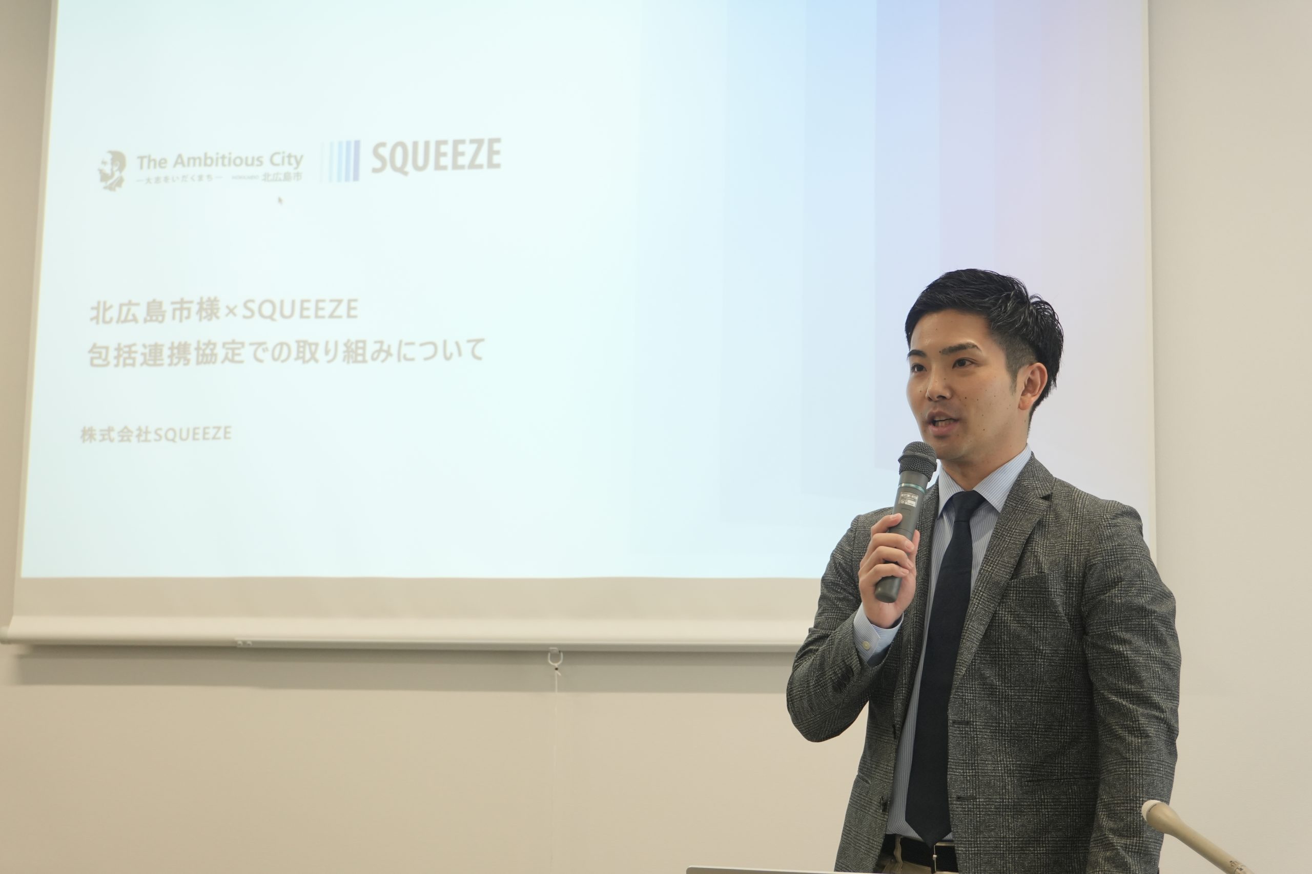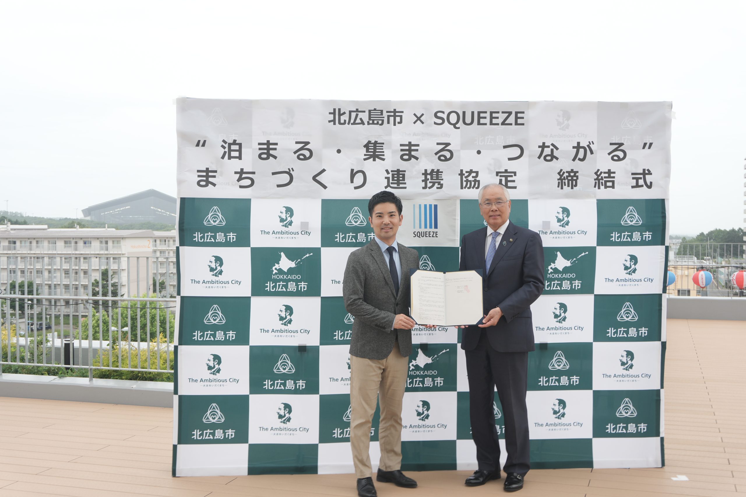 SQUEEZEは2014年の創業以来、代表・舘林の原体験(北海道の空き家を活用した民泊運営)をルーツに、「空間と時間の可能性を広げるプラットフォームになる」というビジョンのもとクラウド型宿泊運営を軸とした事業展開を進めてまいりました。すでに北広島市内にも複数のホテルを運営しており、今年本店所在地を東京都から北広島市へ移転。自治体と一体となって、「観光×DX×地域共創」による持続可能な都市モデルの構築を推進してまいります。