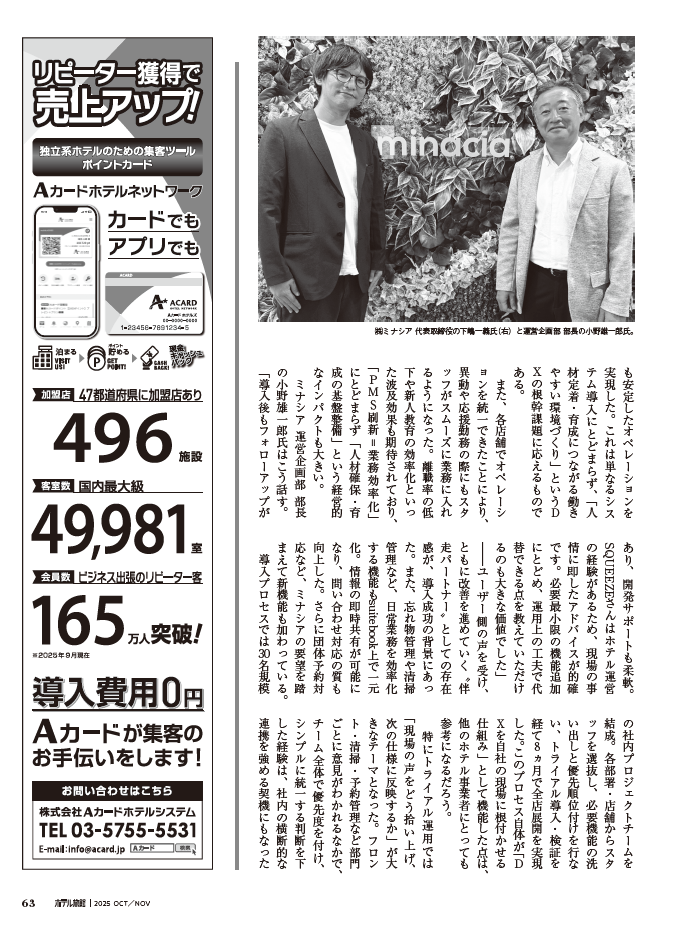 掲載誌:『ホテル旅館』2025年10・11月号 特集「人材不足の市場をゲームチェンジ!DXが変えるオペレーションの未来」