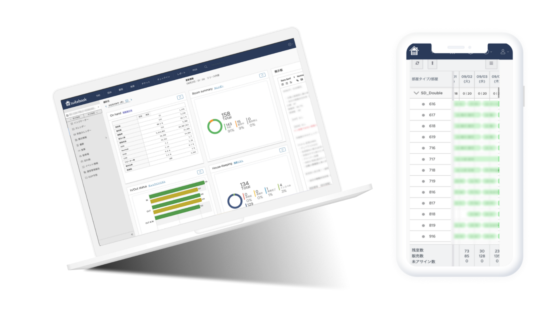 宿泊管理システム「suitebook」を導入し、予約・チェックイン・清掃管理・収益管理などを一体で管理。