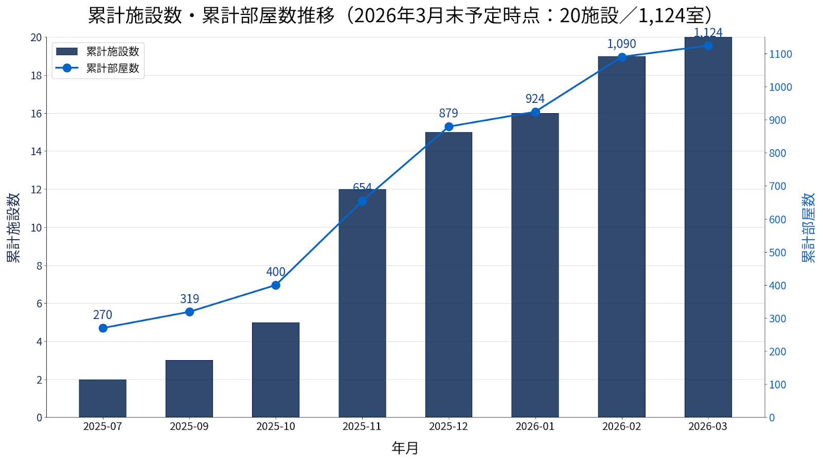 2026年3月末時点で、suitebookは新規開業施設および既存施設を含む20施設・1,124室に導入が予定されています。